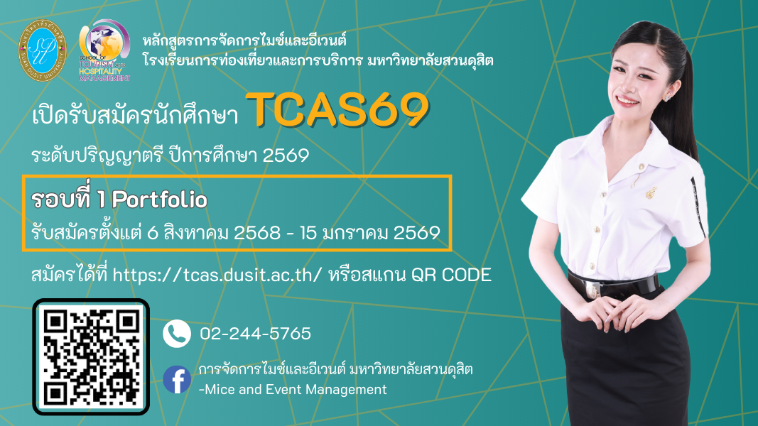 หลักสูตรศิลปศาสตรบัณฑิต สาขาวิชาการจัดการไมซ์และอีเวนต์ บูรณาการศาสตร์และศิลป์ด้านการบริการและการจัดการ เพื่อสร้างสรรค์ธุรกิจไมซ์และอีเวนต์ในยุคดิจิทัล จัดการเรียนการสอนทั้งภาคทฤษฎี และภาคปฏิบัติที่เน้นการฝึกงานจริง ในสถานประกอบการชั้นนำของประเทศ มีภาวะผู้นำและมีบุคลิกภาพที่โดดเด่นเป็นที่ยอมรับในสายอาชีพ