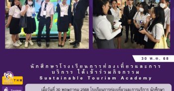 นักศึกษาโรงเรียนการท่องเที่ยวและการบริการ ได้เข้าร่วมกิจกรรม Sustainable Tourism Academy